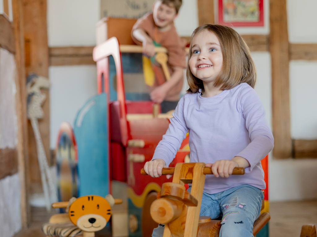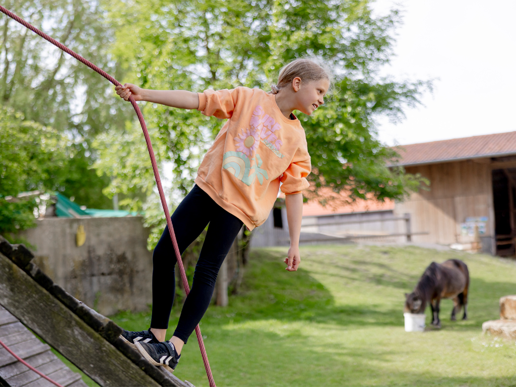 Auf dem großen, weitläufigen Gelände des Ferienbauernhof Ohr können Kinder toben, spielen, Kettcar, Bobbycar und Fahrrad fahren, Matschen auf unserem Sand/Wasserspielplatz, Schaukeln, Klettern und bei Regen in der großen Indoorhalle spielen.
