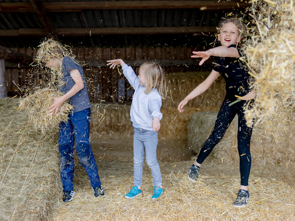 Kinder erkunden den Bauernhof